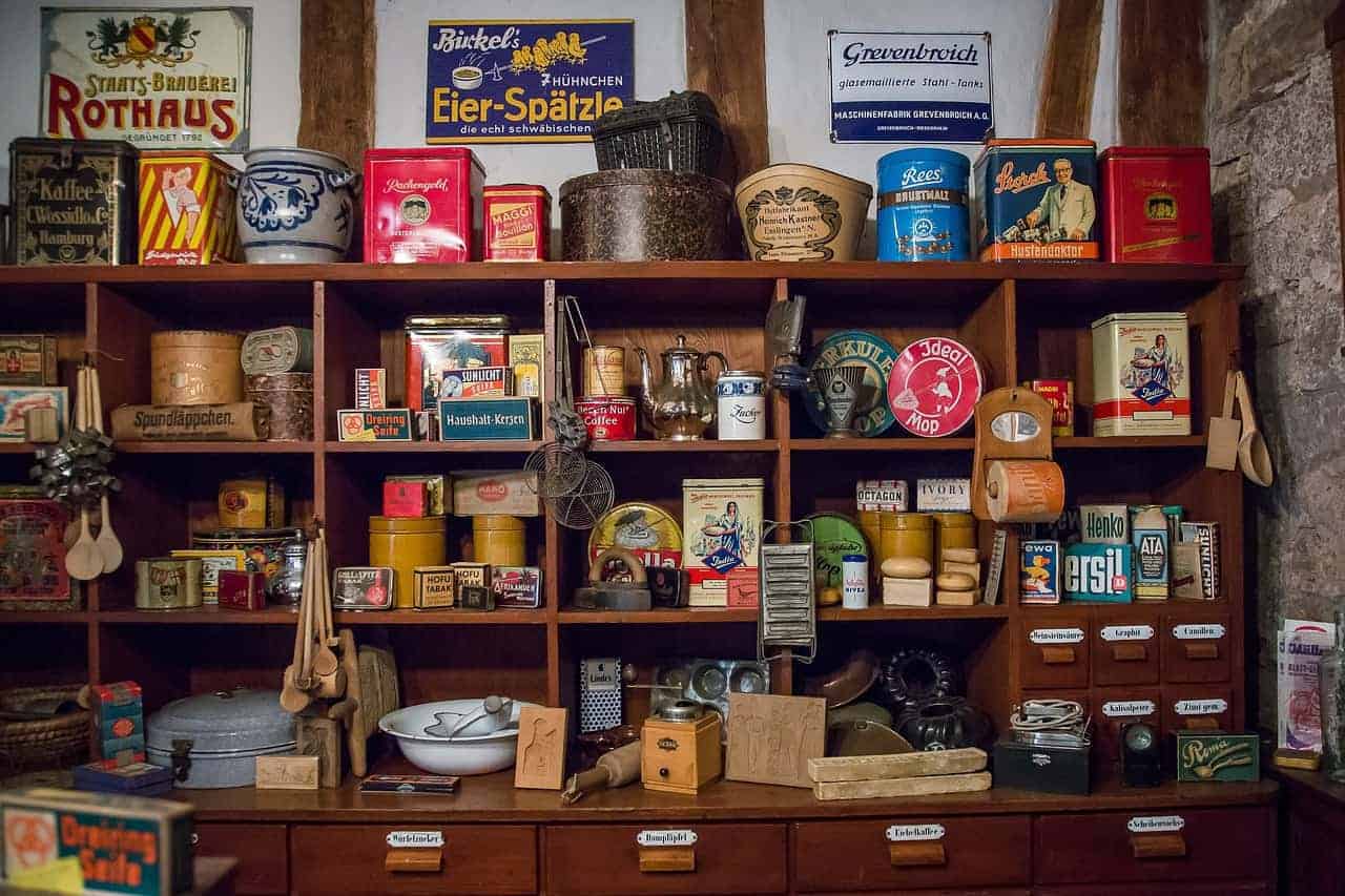 Produkte wie Mehl, Zucker, Reis und Salz befanden sich in, mit Keramikschildern, beschrifteten Laden. Der Inhalt wurde je nach Bedarf abgefüllt, abgewogen und verkauft. Auch Süßigkeiten wurden lose angeboten und anschließend in ein Papierstanitzel gefüllt. Marmelade wurde kiloweise, in fester Form in einer Holzkiste mit Pergamentpapier geliefert und anschließend je nach Bedarf portioniert. Auch bei der Körperhygiene wurde auf Plastik verzichtet. Die sogenannte Kernseife wurde in Kisten mit 100 Stück geliefert und einzeln, in Zeitungspapier, verkauft.