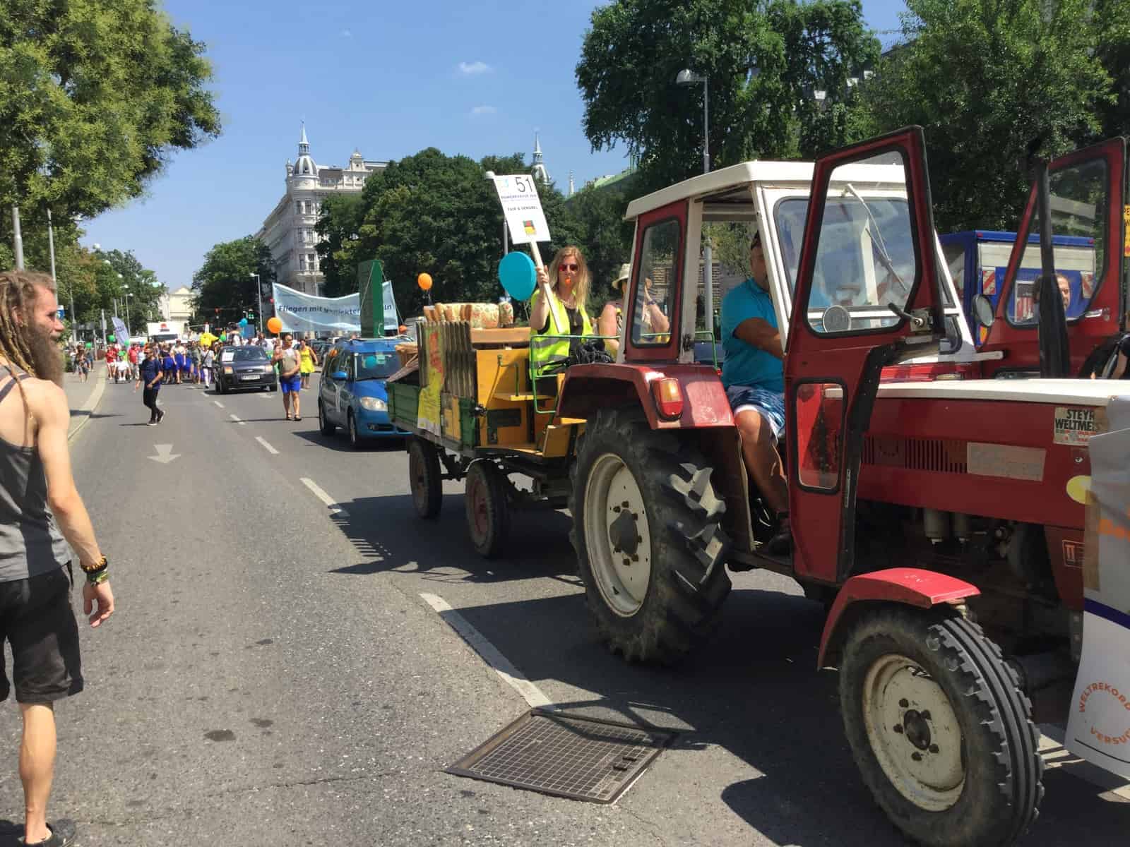 Mit Trillerpfeifen-Getöse, lauter Musik und vielen Luftballons ging sie Donnerstagmittag durch Wien: die Powerparade. Es ging vom Rathaus zum Heldenplatz. Trotz der starken Hitze war die Stimmung ausgezeichnet. Das Motto? – Alle für alle!