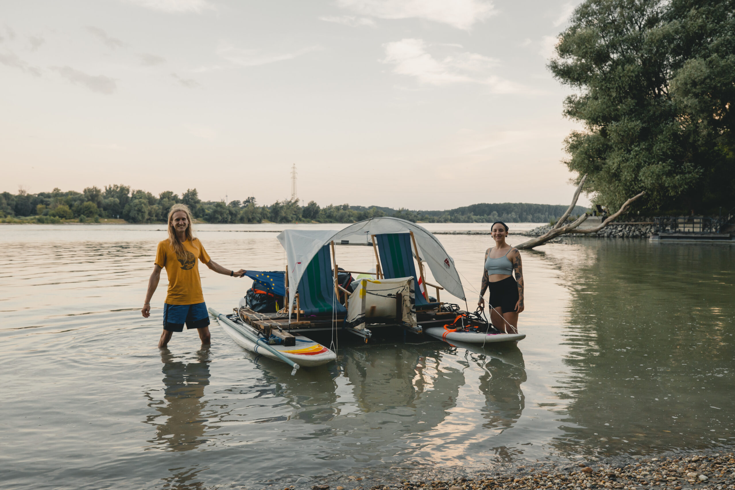 Michelle: Primär wollten wir die Donau kennenlernen. Mit dem Kayak runterzufahren wäre aber viel zu einfach. Das wäre dann ein netter Urlaub gewesen, aber kein Abenteuer. Außerdem kann man es einfach gut symbolisieren: Wenn man ein upgecyceltes Boot hat, ist das ein Hingucker. Das Ganze war natürlich super gefährlich, deshalb soll das bitte keiner nachmachen.
